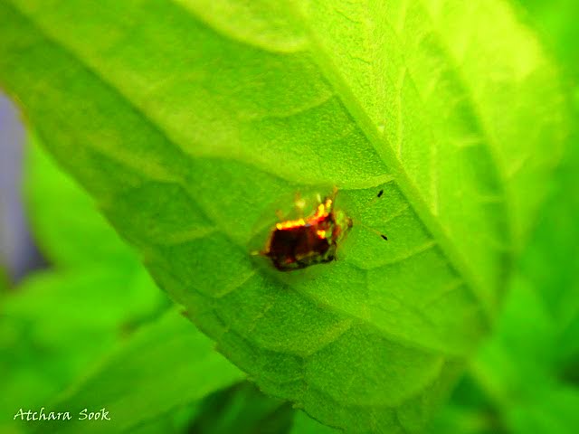 ภาพแมลงที่นำมาฝาก อาจดูไม่เข้าพวกกันไปบ้าง แมลงบางตัวเกาะนิ่งอย่างเต็มใจให้ถ่ายภาพ จึงได้ภาพมาหลายภาพ แต่บางตัวเล่นตัวให้ตามจนเหนื่อย มุมที่ถ่ายจึงสวยงามเท่าที่ควร แต่ที่ไม่เข้าพวกสุดๆ คือได้ภาพหอยตัวจิ๋วมาด้วย เป็นหอยที่ตัวเล็กมาก ที่จริงไม่ได้ตั้งใจจะถ่ายภาพหอย แต่ขณะที่กำลังจดจ้องแมลงตัวหนึ่งอยู่ก็เหลือบไปเห็นหอยตัวนี้เกาะอยู่บนใบไม้ใกล้ๆกัน เลยต้องเก็บภาพมาร่วมคอลเล็กชันด้วยเหตุนี้