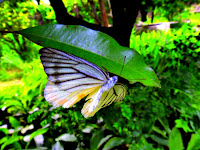 แต่ที่งงไม่หายจนถึงตอนนี้ คือแมลงที่ดูเหมือนมีสองหัวอยู่ในตัวเดียวกัน อันนี้บรรยายตามลักษณะที่มองผ่านเลนส์ของแว่นสายตายาวขนาด 200 นะคะ แต่ดูอีกทีก็เหมือนแมลงสองตัวกำลังหันก้นชนกันอยู่ พอตกใจมันก็บินหนีไปพร้อมกันเหมือนเป็นแมลงตัวเดียว เพ่งมองอยู่นานจึงพบเข้ากับแมลงชนิดเดียวกันนี้อีกหลายตัวในบริเวณนั้น ทุกตัวมีลักษณะเหมือน กันเป๊ะ คือเหมือนมีสองหัวหรือกำลังหันก้นชนกันอยู่อย่างที่บอก แถมยังเกาะพร้อมกันบินหนีพร้อมกัน เกือบจะสรุปเอาเองตามประจักษ์พยานที่เห็นว่า มันคือแมลงตัวเดียวที่มีสองหัวแน่นอน แต่มีคนมาบอกเสียก่อนว่ามันคือแมลงสองตัวที่กำลังผสมพันธุ์กัน ซึ่งดูจากภาพก็น่าจะเป็นอย่างนั้น