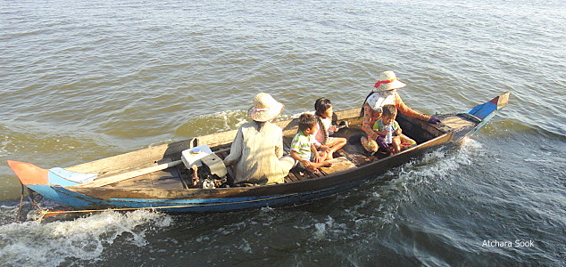 ภาพของโตนเลสาบที่กว้างใหญ่สุดลูกหูลูกตาอยู่เบื้องหน้า  ดูแล้วคุ้นๆ คล้ายกับภาพพื้นที่น้ำท่วมครั้งใหญ่ในเมืองไทยที่เพิ่งผ่านไปหมาดๆ โตนเลสาบอยู่ห่างจากกรุงพนมเปญประมาณ100กิโลเมตร ฤดูน้ำหลากน้ำท่วมถึง 7,500 ตารางกิโลเมตร มีความลึกถึง 10 เมตร ครอบคลุมพื้นที่ 5 จังหวัด ได้แก่ กำปงธม กำปงซะนัง โพธิสัตว์ พระตะบอง และเสียมเรียบ ในโตนเลสาปมีปลาชุกชุมกว่า 300 ชนิด และจำนวนไม่น้อยของปลาเหล่านี้ถูกจับมาขายในเมืองไทยเช่นกัน