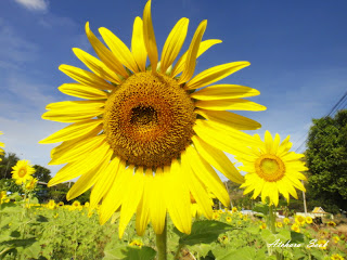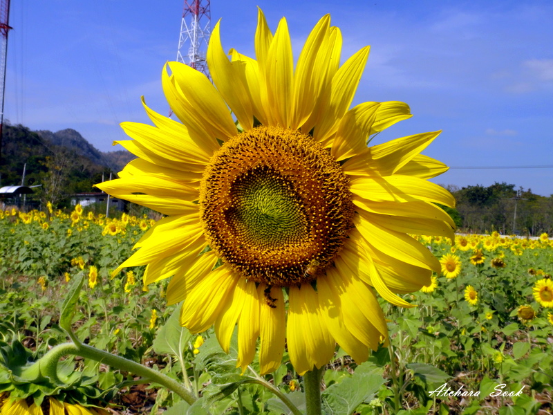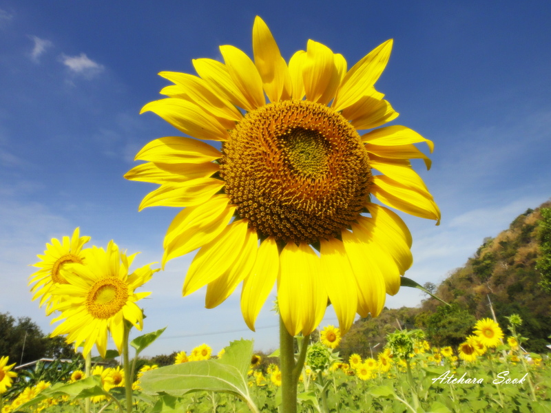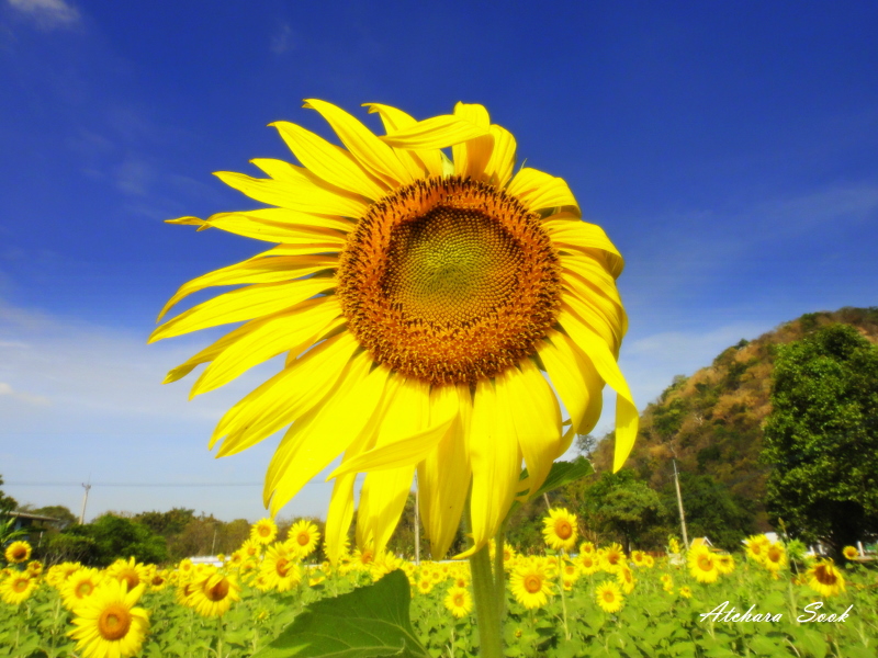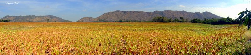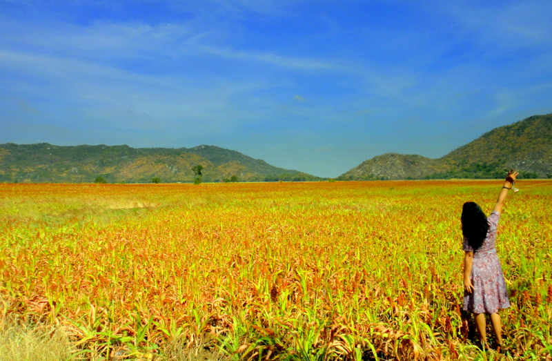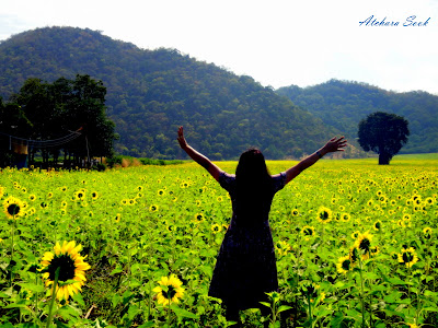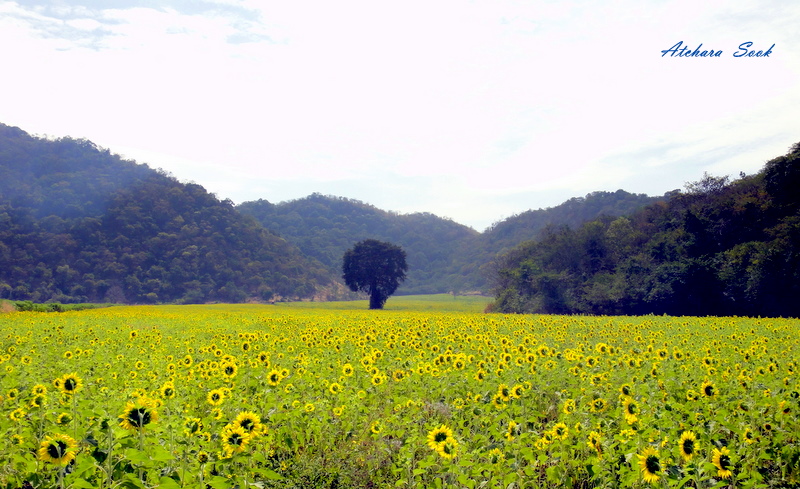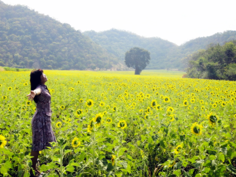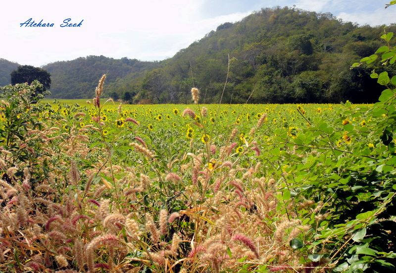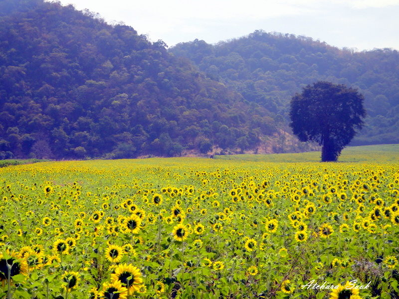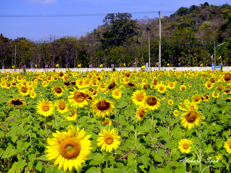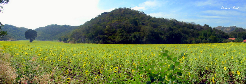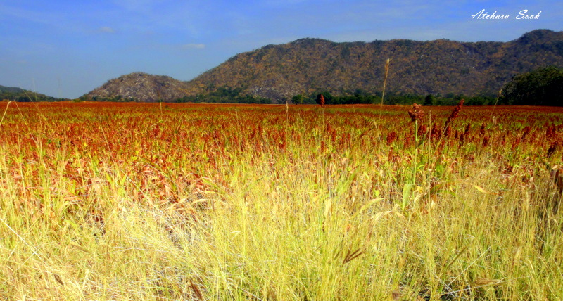 สถานที่ถ่ายภาพครั้งนี้อยู่ไม่ไกลจากบ้านนัก และอยู่ใกล้กันทั้งสองแห่งมีถนนสายหลักของตาคลีกั้นกลางระหว่างสองทุ่งนี้ แห่งแรกทุ่งทานตะวันสีทองในหุบเขาเล็กๆ กำลังบานแฉ่งอวดยิ้มรับแสงตะวันเหลืองพราวไปทั้งหุบเขา อีกแห่งเป็นทุ่งข้าวฟ่างที่กำลังออกดอกสีแดงสะพรั่งแต้มสีสันสดใสไปทั่วทุ่ง โดยมีภูเขาลูกเตี้ยๆทอดตัวเป็นแนวยาวอยู่ด้านหลัง