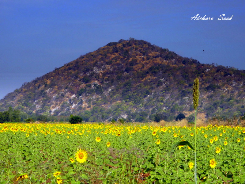 สถานที่ถ่ายภาพครั้งนี้อยู่ไม่ไกลจากบ้านนัก และอยู่ใกล้กันทั้งสองแห่งมีถนนสายหลักของตาคลีกั้นกลางระหว่างสองทุ่งนี้ แห่งแรกทุ่งทานตะวันสีทองในหุบเขาเล็กๆ กำลังบานแฉ่งอวดยิ้มรับแสงตะวันเหลืองพราวไปทั้งหุบเขา อีกแห่งเป็นทุ่งข้าวฟ่างที่กำลังออกดอกสีแดงสะพรั่งแต้มสีสันสดใสไปทั่วทุ่ง โดยมีภูเขาลูกเตี้ยๆทอดตัวเป็นแนวยาวอยู่ด้านหลัง